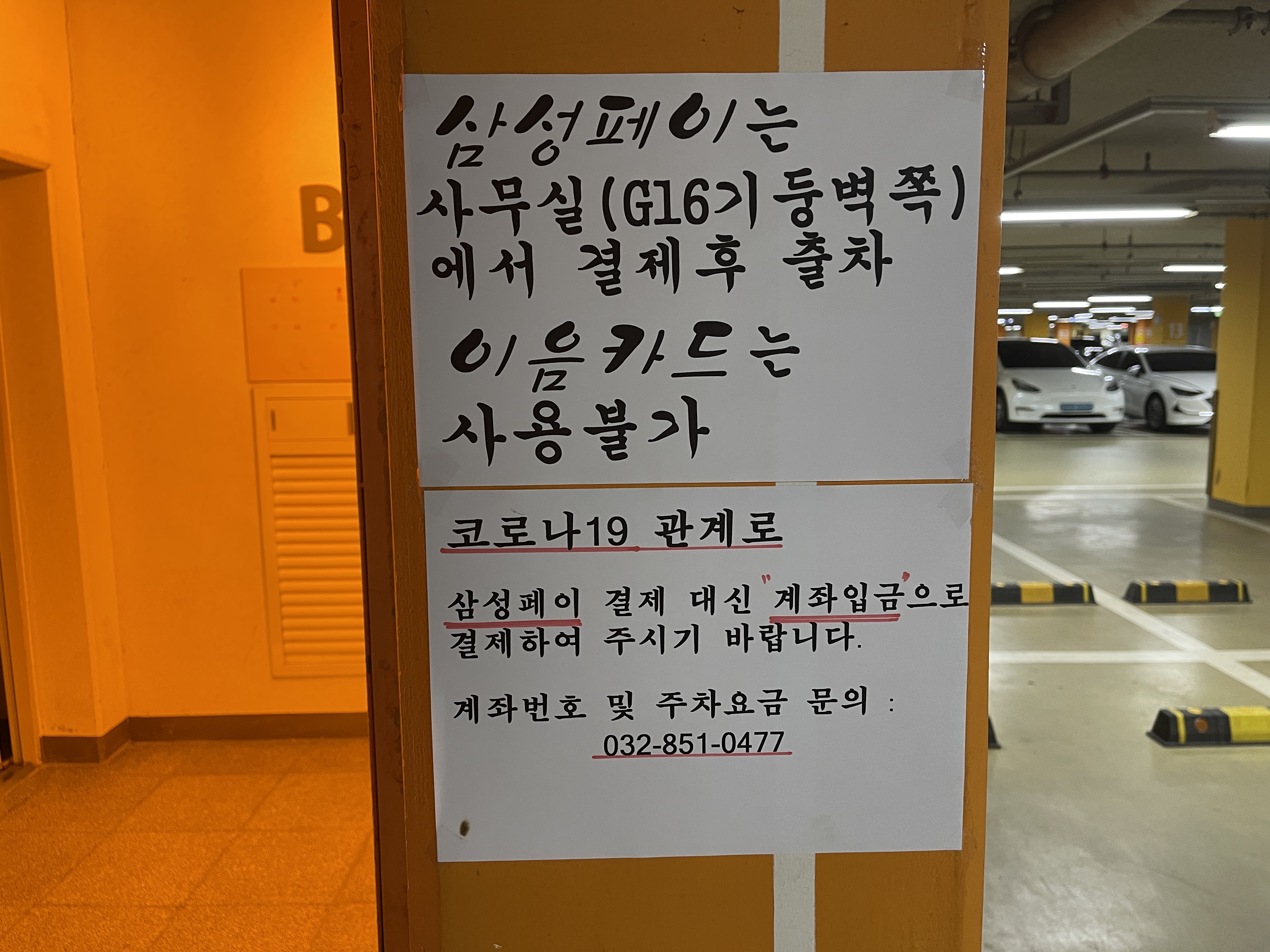 (삼성 페이는 사무실에서 결제 후 출차 가능합니다.)